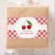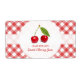 Customizable retro jar labels for homemade sweet cherry jam, jelly or preserves with fresh cherries on red and white gingham tablecloth pattern.