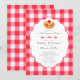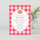 Celebrate a sweet little addition with this charming “She’s Our Cherry on Top” baby shower invitation. Featuring a delightful watercolor cherry pie topped with a bright cherry and a classic red gingham background, this design captures the cozy charm of a farmers market or picnic-inspired celebration. The scalloped frame and soft watercolor details give the invitation a warm cottagecore feel that’s perfect for summer baby showers, cherry-themed parties, or rustic gatherings. Easily personalize the wording to create a beautiful invitation for your special day