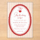 Cherry on Top Coquette Bow Pink Couples Shower Invitation - An adorable design featuring a hand drawn cherry hanging from a coquette bow with hand written and modern typography. The background is trendy pink and white stripes, the perfect way to celebrate your little one. Our easy to use template makes it so easy for your personalize your invitation. Cherry on top Coquette Bow Pink Baby Shower will be part of a Baby Shower Collection.The back of the invitation features the happy parents to be. Option available without photo.
