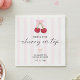 Celebrate the bride-to-be with these charming “She’s the Cherry on Top” bridal shower napkins, featuring sweet cherry artwork, soft pink stripes, and elegant script lettering. Perfect for dessert tables, cocktails, or party displays, these napkins add a playful-yet-pretty touch to any gathering. Personalize with the bride’s name and event date for a custom keepsake guests will adore.
