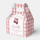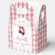 These stylish baby shower favor boxes, feature cherries and bow, elegant script typography and arch on a gingham background, can be personalized with all your special baby shower details and thank you message on the back. Designed by Thisisnotme©