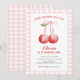 Cherry on Top Pink Bow preppy 1st birthday Invitation