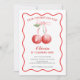 Cherry on Top Pink Bow preppy 1st birthday Invitation
