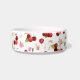 This is a heavy, durable bowl decorated with Tibbies of many colors, the perfect size for hungry/thirsty Tibs. The design is interesting and printing clear.