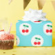 Add a splash of vintage sweetness to your everyday essentials with this bold cherry pattern. Featuring twin red cherries with green leaves framed in scalloped white circles, all set against a vibrant light blue background, this design brings playful retro flair to a wide range of products.