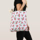 This tote bag, created from an original watercolor painting by Ilene Avery, is filled cherry clusters in pinks and reds.