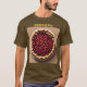 This is a Cherry Pie T-Shirt. The t-shirt is a Brown Basic Dark T-Shirt. The cherry pie image was created with generative art. The artwork features a fresh cherry pie on a white plate with a tan background. The words Cherry Pie are above the image on the front and back of the t-shirt. Cherry Pie is in gold text. You can change the text by clicking the Personalize button.
