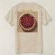 This is a Cherry Pie T-Shirt. The t-shirt is a comfortable cotton t-shirt. The image displays a Cherry Pie on a white plate on a tan background. The cherry pie was created with generative art. The artwork features a fresh cherry pie on a white plate with a tan background. The words Cherry Pie are above the image on the front and back of the t-shirt. Cherry Pie is in gold text. You can change the text by clicking the Personalize button.