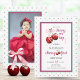 Cherry Pink Coquette Bow First Birthday Photo Invitation