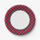 Paper plates with a cherry red, black, and white plaid border. A Plaidwerx original sporty pattern. Two sizes available.