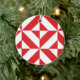 Cherry Red Geometric Deco Cube Pattern Ceramic Ornament