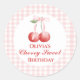 Cherry Sweet birthday Pink Bow Gingham Classic Round Sticker