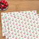 A tissue paper adorned with a pattern of cherries and its green leaves on a light beige background. An adorable way to wrap a present, perfect for kids or anyone who loves sweet fruits!