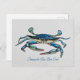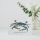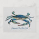 Colorful notecard featuring a watercolor style image of the Chesapeake Bay Blue Crab, noted for its sweet meat which is used in world famous crab cakes in Virginia and Maryland.