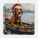 Celebrate the adventurous spirit of the Chesapeake Bay Retriever this Christmas! This rugged painting features a handsome Chessie, wearing a Santa hat, sitting proudly in a festive hunting boat filled with pine boughs and ornaments on a chilly winter morning. Perfect for Chesapeake owners, hunting dog enthusiasts, and anyone who loves a powerful, loyal companion. Ideal for unique cards, durable mugs, and gifts that capture the distinct spirit of the outdoorsy, hardworking Chessie.