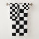 Transform your bathroom into a sophisticated and stylish space with this set of bath towels featuring a classic chess board design. The black and white squares create a sleek and modern look that will complement any bathroom decor.