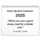 Minimalistic design and essential quotes for this 2025 Chess themed calendar. Each month, a powerful quote from some of the very best players of all times.