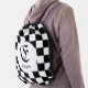 Chess Checkered Black and White - Name initial Drawstring Bag