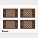 This sticker features the effect of a rich dark wood veneer with an inlaid eight by eight square checkered board of alternating decorated brown and cream tiles representing the dark and light squares of a chessboard, draughts board or checkers board.