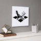 A black and white illustration of a knight taking a queen in a chess game. A black and white illustration for people who loves playing chess, and other board games.