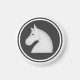 Chess Piece White Knight Round Fridge Magnet. Make a chess game board on your fridge with this stylish magnetic chess piece, buy all chess pieces magnets (16 pieces: one king, one queen, two rooks, two knights, two bishops, and eight pawns) to make your own fridge chess game!
