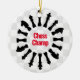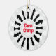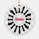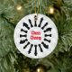 Lightweight, smooth, pure white ornament with nice sheen. Perfect size to be seen from across the room ... and to attract closer inspection! Price was great for ordering enough for the whole family! Clear, bold black design just as requested. Matches the order exactly. Just so nice!