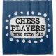 "Chess Players Have More Fun" is a cute text design with a white accent shape surrounded by white whimsical dots.