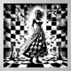 Enhance your space with this charming poster featuring a stylish woman in a classic black and white checked skirt surrounded by intricate chess pieces. ♟️🖤