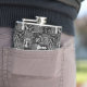 It's your move! This original hip flask design in honor of the classic game of chess features terminology from the game along with eye-catching graphics of chess pieces to complete the pattern. The traditional black and white color scheme has been given a more modern, contemporary vibe with the addition of shades of silver and gray. A subtle checked background mimics a chessboard without being too in-your-face. Search ID784 to see the complete range of colors and additional products with this design.