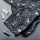 Chess Terms and Pieces Silver and Blue ID784 Fabric