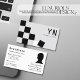 Make a lasting impression with this cool and modern business card design featuring black and light gray checkered pattern and the backgrounds are light gray and white.