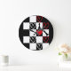 Chessboard Heart Valentines Day B&W Large Clock