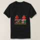 My 11 yo wore adult XL (5’7” 165#). The 8yo is small framed. She wore adult small and tied it in the back. Grandma wore adult large with long sleeve shirt underneath. Tall girl adult medium. Dark haired male adult large. Good quality dark Heather gray, Gildan brand shirt. -it was next up from basic choice and cost about $20 per shirt. Not too thick or thin. Washed and dried well, no major shrinkage. Not see-through. Can wear a bra under it fine. Screen print is just as shown and well done, front and back.
