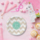 Customizable 95th Birthday Party Paper Plate with chevron and customizable color into round tag. You can easily change background color ((here aqua mint color) and text color (name), font, size and position by clicking the customize button. Matching Chevron Birthday paper Napkins, birthday save the date, invitation and guest book. Don't forget the whole collection.