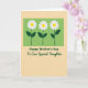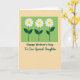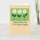 The front design shows a soft lime-green rectangle at the top, filled with three stylized flowers that lean toward each other like close friends sharing a quiet moment ❤️. Each bloom has crisp white petals spreading around a sunny yellow center, while deep green stems and small oval leaves anchor them in place. Beneath the green panel, the background shifts to a creamy, muted ochre that feels calm and welcoming. Centered in this lower area, the main message appears in a rounded forest-green font, easy to read and friendly. Just below it sits a smaller, flowing line of text in a darker green, adding a gentle, affectionate tone without crowding the layout 🌼. A faint, grainy texture across the whole card gives it a softly worn, paper-like look. The top panel has clean edges, and the three blossoms sit evenly spaced with their yellow centers glowing against the green.