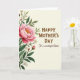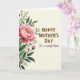 This card features a tall, vertical layout with a lush floral arrangement flowing down the left side, like a bouquet leaning in close for a gentle embrace ❤️. A large open flower in soft pink sits near the middle, with shaded petals that look velvety and a bright cluster of golden-yellow stamens at its center. Slender curved stems reach upward and outward, layered with deep green and lighter sage leaves that add a calm, natural rhythm. Small white blossoms with yellow centers peek through the foliage, alongside a few closed pink buds that suggest a relationship still unfolding. The background is a soft cream tone that feels like warm morning light, giving the whole scene a quiet, affectionate glow 🌼. On the right side, the greeting text is arranged in a neat column, with the main line set larger near the upper-middle and a smaller line placed beneath it. Both lines are in an earthy brown, with the first in a classic serif style and the second in a flowing cursive look, leaving generous open space around the words. The pink bloom and its arching stems frame the right-side text while the cream background stays smooth and uncluttered.