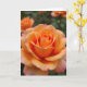 This card features a close-up of a single fully opened flower centered in the design, filling most of the frame like a shared moment held close ❤️. The petals blend warm orange and soft peach, with hints of pink along gently ruffled edges that feel as tender as a quiet glance between friends. A soft, diffused light falls across each curve and fold, creating gentle shadows that add depth without harsh contrast. Tiny water droplets cling to several petals, catching the light like little sparkling notes of affection. Behind the bloom, a green background is softly blurred, suggesting a garden setting while keeping all attention on the flower. Near the top, simple text sits neatly in a light color that stands out against the greenery without overpowering the image 🌼. The petals spiral inward toward a deeper, richer center, where the color intensifies and the dew glints brightest.