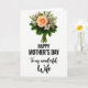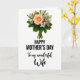 This greeting card features a floating bouquet against a bright white background, arranged to feel like a gentle embrace ❤️. Near the top, a large apricot-colored flower with many layered petals takes center stage, drawing the eye with its soft warmth. Around it, clusters of tiny white blossoms nestle close, with green leaves and a few pale lavender sprigs adding a quiet, affectionate touch. Several unopened buds lean inward as if sharing a private moment, while the green stems gather neatly below to steady the arrangement. In the lower half, a short headline in dark black letters sits above a second line in a thinner, flowing style, creating a sweet contrast without crowding the flowers 🌼. The lettering is centered and spaced so the white space feels airy, letting the bouquet and message sit together like a tender exchange. The apricot bloom sits slightly above center, with the black text aligned beneath it on the open white field.