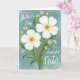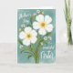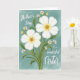This card features a graceful bouquet of blossoms set against a dusty teal background with a soft, painterly texture. Two large white flowers with five rounded petals sit front and center, their golden-yellow centers glowing like a warm shared glance ❤️. Around them, smaller white daisy-like blooms cluster in a way that feels like close friends leaning in together. Slender green stems and variegated leaves rise from the lower edge, adding gentle movement and a sense of growing affection. The lighting stays diffused with no harsh shadows, keeping the scene calm and intimate. A smooth gradient in the larger petals shifts from bright white into sunny yellow near the middle, like warmth spreading outward 🌼. White lettering appears across the upper portion of the design, standing out crisply against the teal while leaving the flowers unobstructed. Fine leaf veins and layered green tones add depth along the lower half, with the tallest stems reaching toward the top edge.