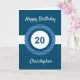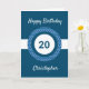 A personalized blue 20th birthday card, which you can easily personalize with his name on the front of the card. You can also personalize the inside card message if you wanted. This personalized 20th birthday card for him would make a great keepsake.