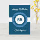 A personalized blue 55th birthday card for him, which you can easily personalize with the age you need along with his name on the front of the card. You can easily personalize the inside card message if you wanted. This personalized 55th birthday card would make a great keepsake for him.