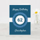 A personalized blue 62nd birthday card for him, which you can easily personalize with the age you need along with his name on the front of the card. You can easily personalize the inside card message if you wanted. This personalized 62nd birthday card for him would make a great keepsake.