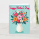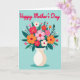 Designed with a centered bouquet of stylized flowers, this card shows a full arrangement in an off-white vase set against a muted teal background. Above the flowers, red cursive-style lettering sits near the top, adding a loving note ❤️. The blossoms open wide in blush pink, coral orange, and deep crimson, with a few small white blooms tucked between them like gentle little accents. Dark green leaves fan out around the petals, and tiny white sprigs add detail that feels like a soft, caring touch between close friends or family. The flat, graphic shapes and smooth outlines keep everything simple and modern without feeling cold. A faint, soft shadow rests under the vase to anchor it on the page. The teal backdrop stays calm and even, letting the red text and warm flowers stand out clearly.