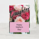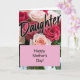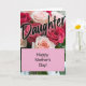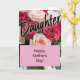 This design shows a lush bouquet of blooming roses filling the upper area, mixing blush pink petals with deeper crimson flowers and a few touches of green foliage. Gentle, diffused light slides across the velvety layers, making the curled petals look soft and inviting, like a quiet hug shared between close family ❤️. Near the lower middle, a lighter pink rose draws your eye, its neatly unfurling petals giving the arrangement a tender, affectionate focus. Across the flowers, the word “Daughter” appears in flowing black lettering, stretching prominently through the center like a loving note written right over the blooms. Below the bouquet sits a pale pink rectangular panel that anchors the layout and keeps the message area calm and easy to read. Inside that panel, “Happy Mother’s Day!” is set in a simple dark font, centered and spaced to feel balanced, with a small 🌼 mood carried by the soft color pairing. The background stays mostly floral, with subtle leaf shapes peeking around the blossoms and framing the text area.