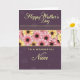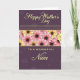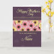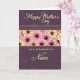 This greeting card features a deep plum-purple background with subtle speckles and soft abstract shapes that add gentle depth ❤️. Near the top, “Happy Mother’s Day” is stacked vertically in flowing cursive lettering, set in a glowing golden-yellow that feels like a warm embrace. Across the middle, a wide horizontal garland of stylized daisy-like flowers creates a sweet, friendly scene, like a bouquet offered with a tender smile. The blossoms have dark centers, with petals alternating between soft pink and sunny yellow, giving the band a cozy, affectionate rhythm 🌼. Thin golden lines frame the floral strip above and below, adding a neat, polished border. Under the flowers, “TO A WONDERFUL” appears in uppercase sans-serif in the same golden-yellow, making the words stand out clearly. The final word, “Niece,” returns to flowing cursive in golden-yellow, placed just beneath the uppercase line. The daisy garland sits centered across the card, with alternating pink-and-yellow petals and dark round centers repeating from left to right.