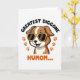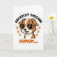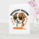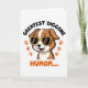This card features a cheerful cartoon dog centered on a white background, drawn with rich brown fur and creamy white markings. The dog’s wide grin and little pink tongue give it the kind of adoring, “you’re my favorite” look that feels like friendship with a dash of romance ❤️. Yellow-framed sunglasses sit across its face, adding a cheeky, sunny-day charm without taking away from the sweet expression. Above the dog, a curved line of thick black text arches neatly over the illustration. Below, a larger line of orange text sits near the bottom, standing out strongly against the white space. Two orange paw prints appear as matching accents on either side, like gentle footprints leading your eyes back to the pup 🌼. The sunglasses are bright yellow, and the paw prints are a warm orange near the lower area of the design.