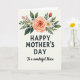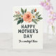 This card features a gentle floral bouquet at the top, painted in soft washes that feel like a quiet garden moment shared with someone you care about ❤️. A large peach-toned flower opens in the center with petals curling in a spiral, while small white blossoms with sunny yellow centers nestle close as if leaning toward one another. Tiny pink buds gather around the flowers, suggesting closeness and growing affection, and layered green leaves fill out the arrangement with natural curves. A small orange-red bud adds a bright accent, like a shy hello tucked into the greenery. Below the flowers, the main text “HAPPY MOTHER’S DAY” sits centered in dark serif lettering, easy to read against the off-white background. Under that, a thinner, flowing line of text reads “To a wonderful Niece” in a darker tone, placed neatly beneath the headline and adding a family-to-family warmth 🌼. The background stays softly off-white, and the bouquet remains anchored at the top with the text stacked in the open space below.