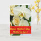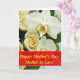 Designed with a lush border of flowers, the top and bottom edges are filled with broad white blossoms that resemble orchids, along with curled rosebuds in cream and warm yellow tones. Fine vein lines run through the white petals, drawing your eye toward speckled centers in deep yellow and reddish-brown, like a quiet secret shared up close. The rosebuds sit nearby with tightly wound golden interiors, giving the arrangement a gentle, affectionate feel ❤️. Across the middle, a wide horizontal banner in deep crimson stretches from side to side, creating a strong contrast against the soft florals. Centered on that banner is a short Mother’s Day message in metallic gold lettering, large enough to read at a glance. The lighting stays soft and diffused, keeping the petals luminous while the banner remains crisp and eye-catching 🌼. Small shadows gather under the layered petals, and the red band looks smooth and flat against the airy white blooms.