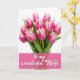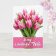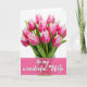 Designed with a luminous bouquet as the main focus, this card shows upright, partly closed flowers set against a bright white background, like a quiet moment shared between close friends ❤️. The petals shift from deep magenta at the center to soft white along the edges, giving each bloom a gentle, affectionate look. Fresh green stems rise from a lightly shown glass container, adding a grounded, just-picked feel beneath the blossoms. Strong, high-key lighting brings out the smooth petal texture and the crisp lines of the leaves, keeping the scene airy and tender. The flowers fill most of the upper area, leaving breathing room around them so the arrangement feels calm rather than crowded. Along the bottom sits a wide fuchsia band with thin white borders, creating a clear base for the message. Centered inside that band, a flowing white message line stands out clearly, with a small 🌼 touch that complements the bouquet. The lower stripe is a rich fuchsia rectangle framed by narrow white lines, while the glass container and stems sit just above it.