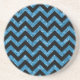Hip and trendy Chevron Glitter Look Coaster. This cool coaster features a chevron zig zag pattern on top of a digital art blue glitter background. Add text to this design to give it a personal touch.